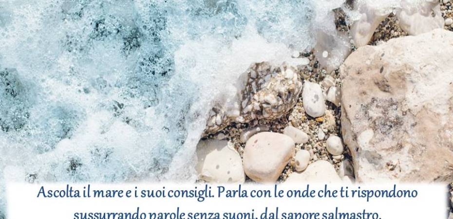 Ascolta il mare e i suoi consigli. Parla con le onde che ti rispondono sussurrando parole senza suoni, dal sapore salmastro. Ascolta, seduta sui sassi che ti fanno compagnia, silenti, bianchi, puri, eterni.