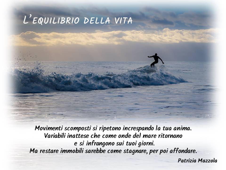 Movimenti scomposti si ripetono increspando la tua anima. Variabili inattese che come onde del mare ritornano e si infrangono sui tuoi giorni. Ma restare immobili sarebbe come stagnare, per poi affondare.