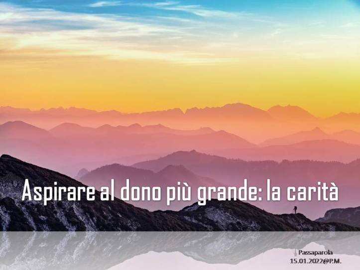 15.01.2022: “Se avessi tutta la fede in modo da spostare le montagne, ma non avessi la carità, non sarei nulla”. (San Paolo)