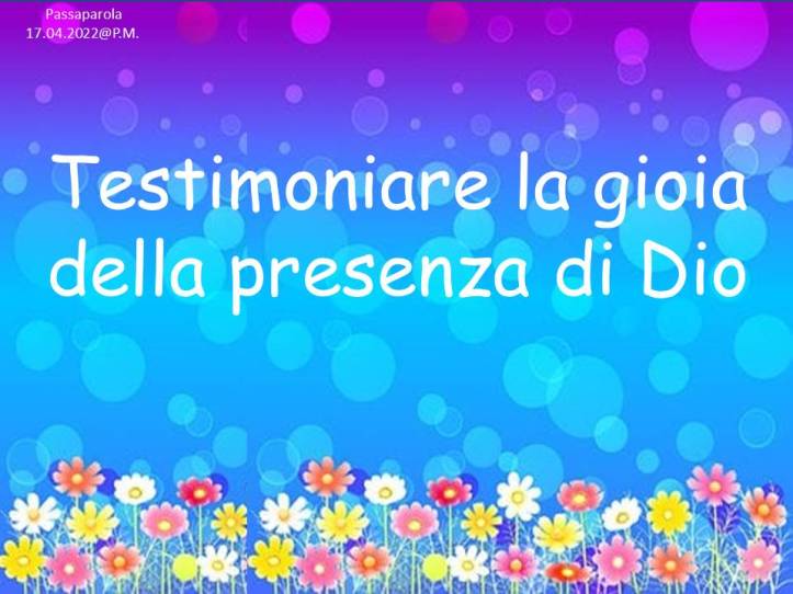 09.05.2022: “La reciprocità è il più bel valore di un rapporto, anzi è l’essenza di qualsiasi tipo di rapporto. Senza di essa non c’è gioia e quindi pace. Non diamoci pace fino a quando non la realizziamo”. (L’esperienza)
