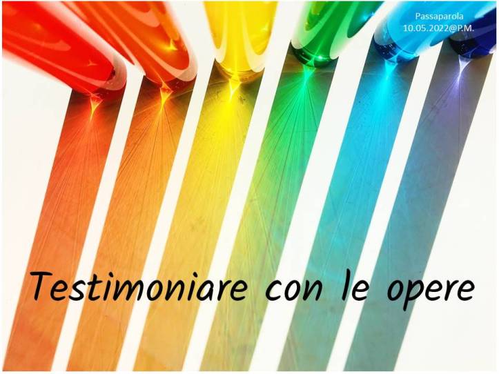 Dal 1 Agosto 2022 non pubblicherò più il passaparola, la frase quotidiana che ho illustrato per quattro anni accompagnandola con degli aforismi. Chiara Lubich ha iniziato “questa pratica” per ricordare e far vivere ai suoi qual è la volontà di Dio: l’amore reciproco. Si può trovare sempre sul sito internazionale del Movimento dei focolari. Grazie a quanti mi hanno seguito e incoraggiato in questi anni!