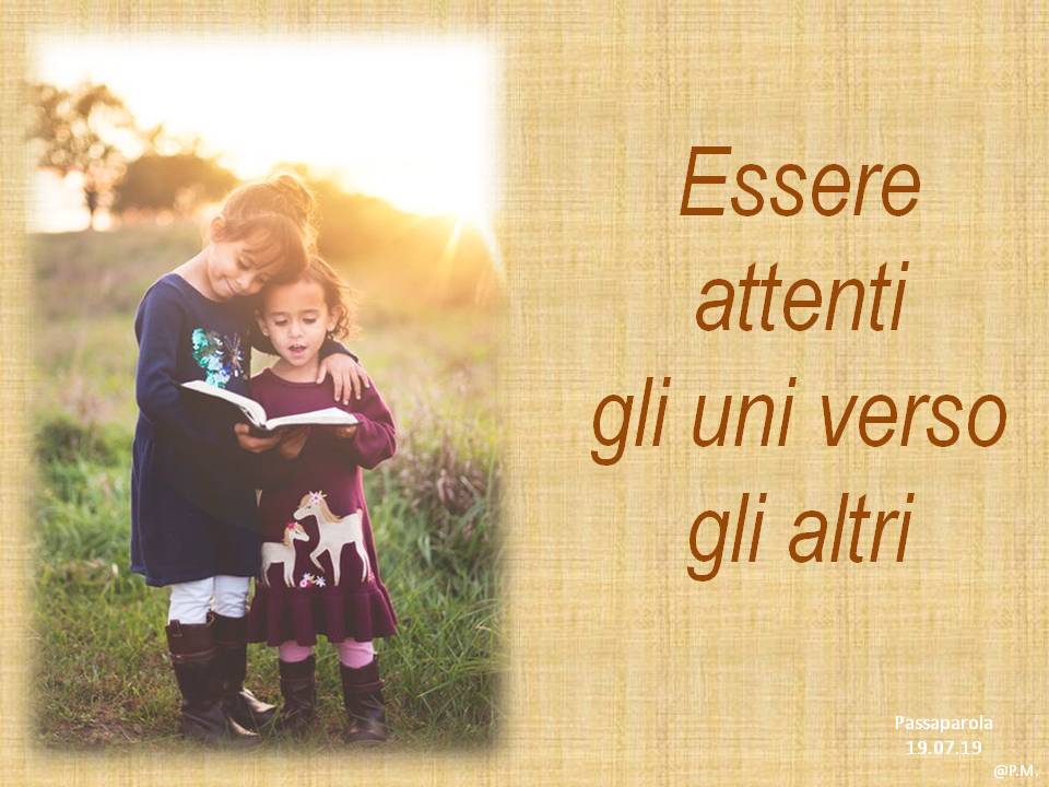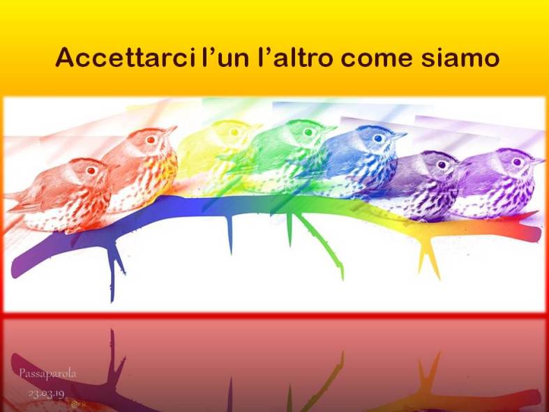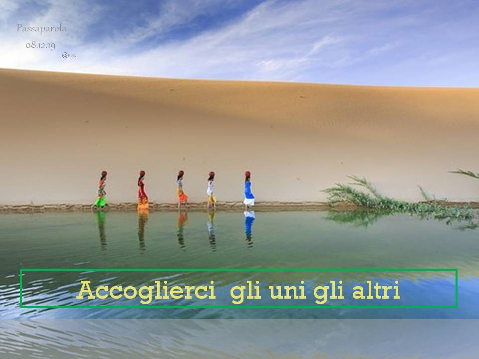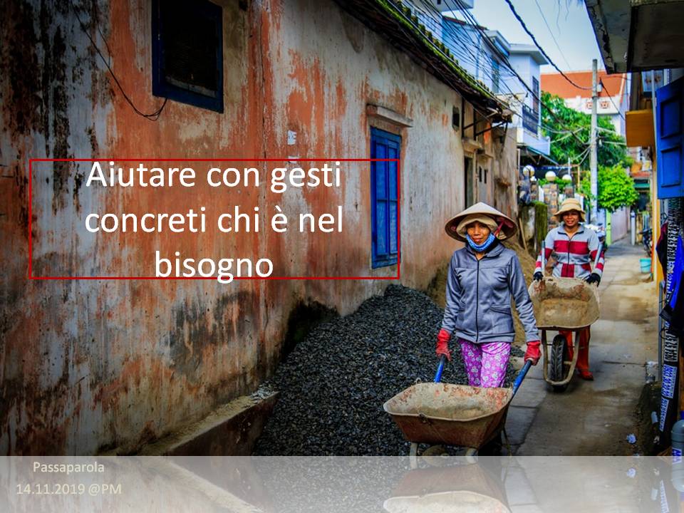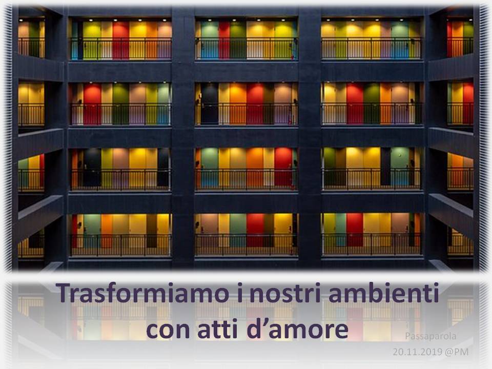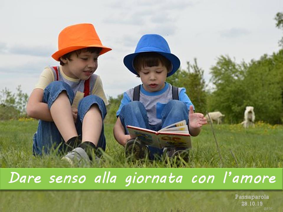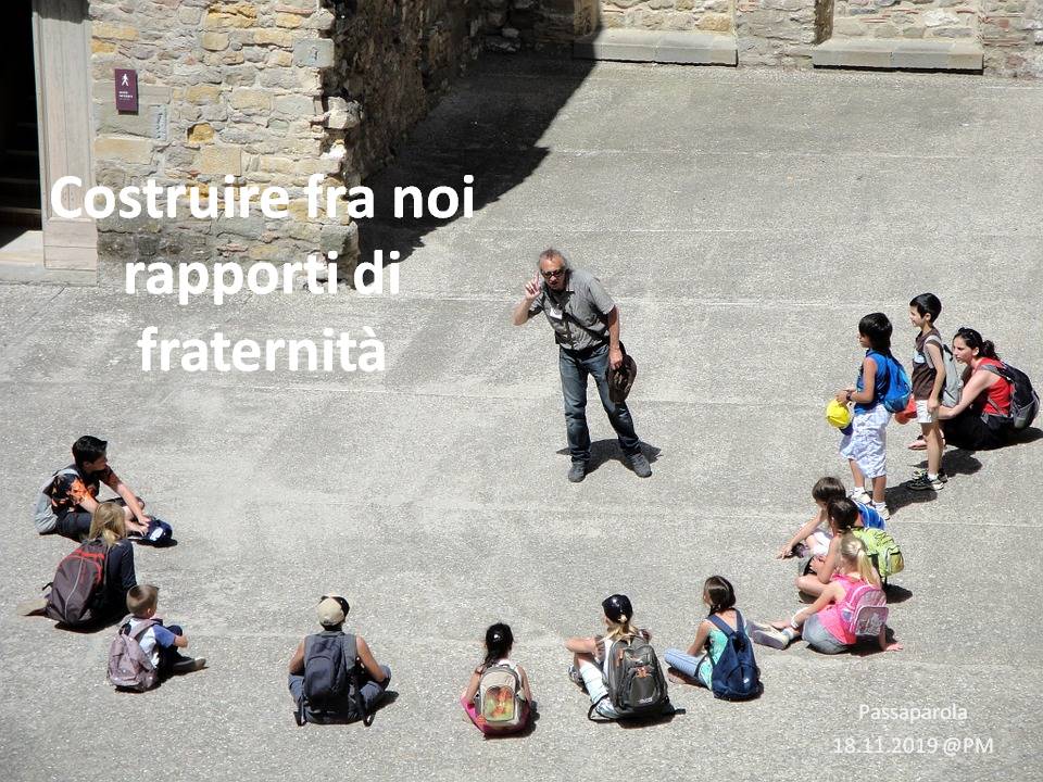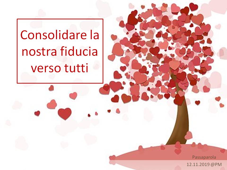 Troverete delle immagini che riportano un passaparola che ci aiuta a vivere ogni giorno la fraternità, diffuso in tutto il mondo, in diverse lingue. Chiara Lubich aveva iniziato “questa pratica” per ricordare e far vivere ai suoi qual è la volontà di Dio: l’amore reciproco. E’ un piccolo escamotage per sentirci ogni giorno – viene inviato soprattutto tramite WhatsApp e si può trovare sul sito internazionale dei focolari – per ricordarci quel che conta: puntare alla fraternità universale.