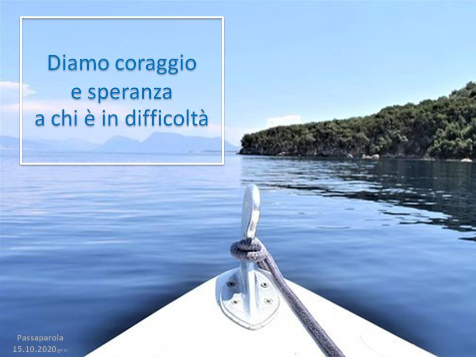 15.10.2020: “In fondo, chi di noi non si è mai scoraggiato, perdendo la speranza? Ripensiamo a coloro ai quali ci siamo aggrappati per continuare la rotta. Ricambiamo questi gesti con quanti ci chiedono anche uno sguardo d’amore e di sostegno per andare avanti”. (L’esperienza)