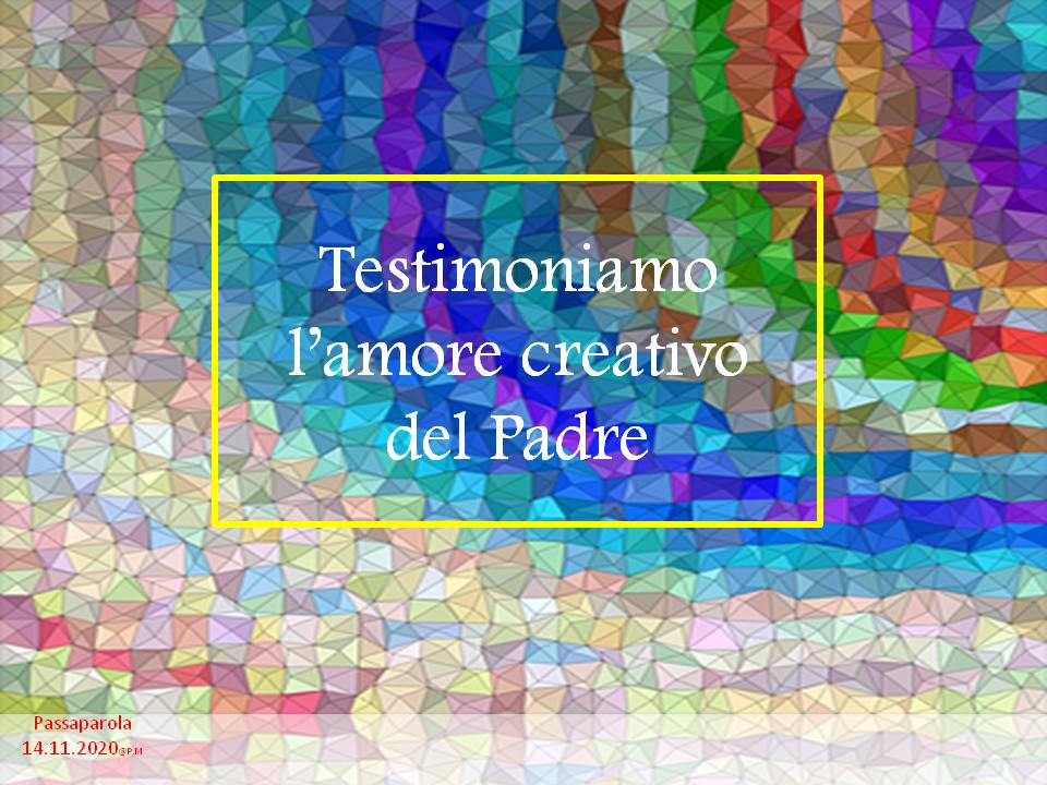31.10.2020: “Nulla vale di ciò che facciamo se in esso non vi è il sentimento d’amore per i fratelli: ché Dio è Padre ed ha nel cuore sempre e solo i figli”. (Chiara Lubich)