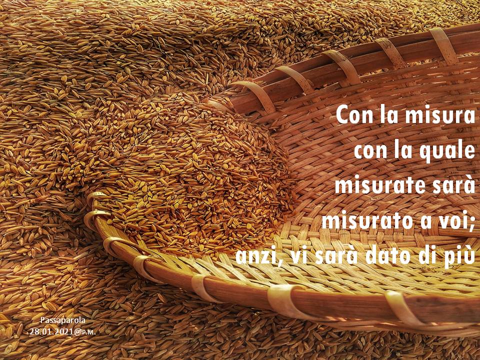 11.09.2020: “Date e vi sarà dato: una misura buona, pigiata, colma e traboccante vi sarà versata nel grembo, perché con la misura con la quale misurate, sarà misurato a voi in cambio. (Vangelo di Luca)