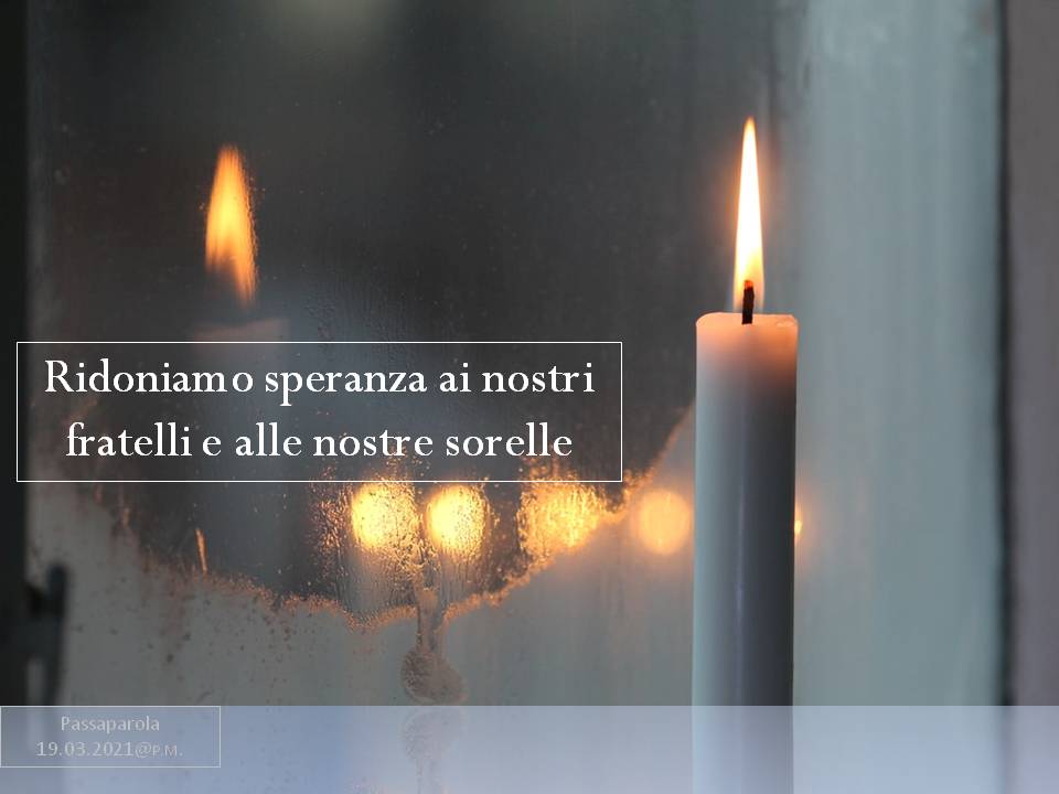 23.11.2020: “Il dono di sé porta un po’ di luce nella vita dei fratelli. Luce che riscalda e arriva al cuore”. (L’esperienza)