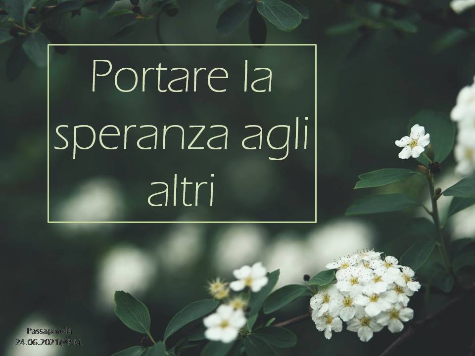 31.12.2021: “Semina la pace e tu vedrai che la tua speranza rivivrà; spine tra le mani piangerai, ma un mondo nuovo nascerà.” (Gen Rosso)