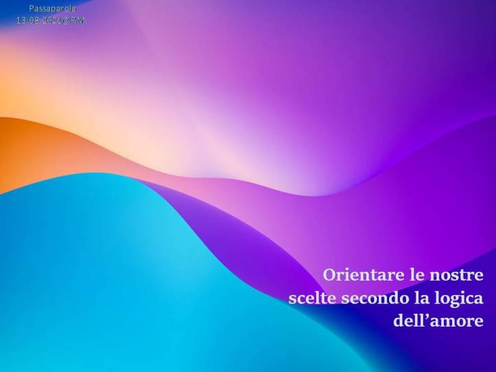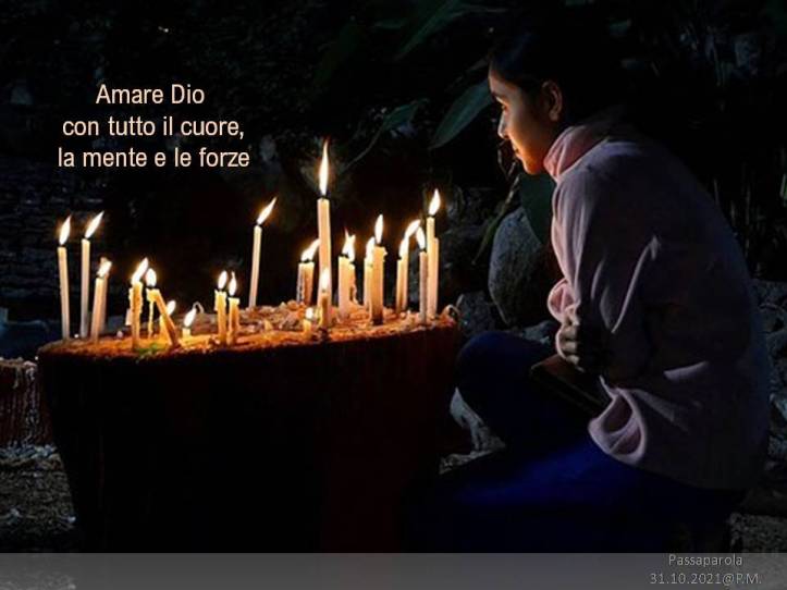 31.10.2021: “Ama Dio con tutto il cuore. Non significa ama Dio solamente, riservando a lui tutto il cuore, ma amalo senza mezze misure. Ama con tutta la mente. L’amore è intelligente: se ami, capisci prima, vai più a fondo e più lontano. Ama con tutte le forze. L’amore arma e disarma, ti fa debole davanti al tuo amato, ma poi capace di spostare le montagne.” (Ermes Ronchi)