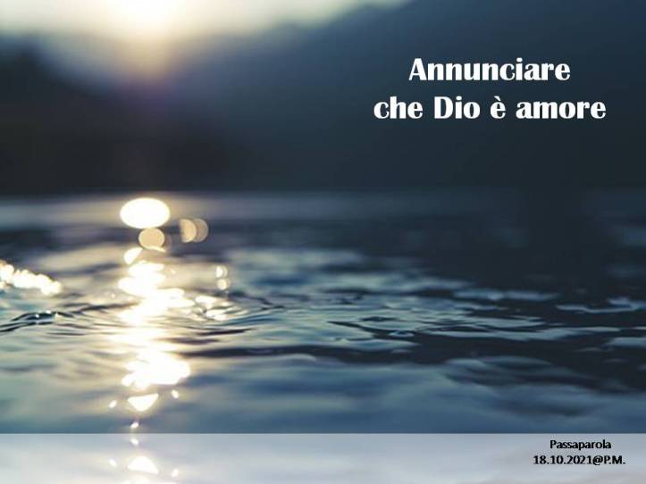 18.10.2021: “Carissimi, amiamoci gli uni gli altri, perché l’amore è da Dio: chiunque ama è generato da Dio e conosce Dio. Chi non ama non ha conosciuto Dio, perché Dio è amore”. ( San Giovanni Apostolo)