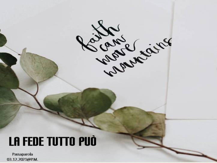 03.12.2021: “In verità vi dico: se avrete fede pari a un granellino di senapa, potrete dire a questo monte: spostati da qui a là, ed esso si sposterà, e niente vi sarà impossibile». (Gesù di Nazaret)