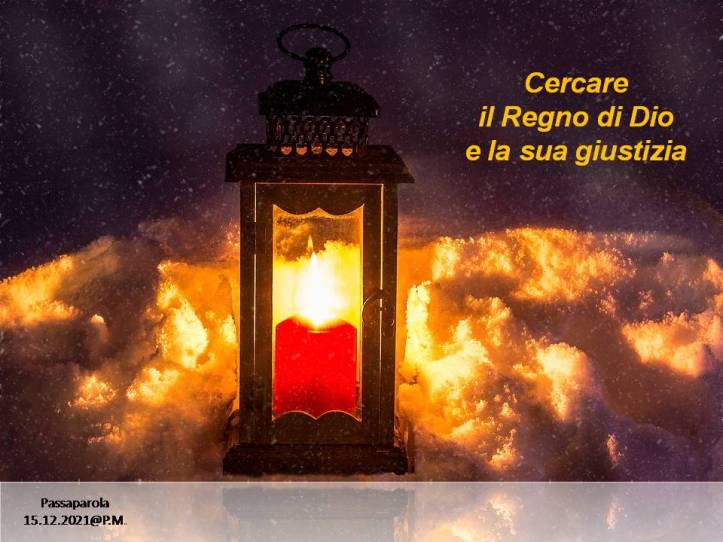 15.12.2021: “Cercate il regno, occupatevi della vita interiore, delle relazioni, del cuore; cercate pace per voi e per gli altri, giustizia per voi e per gli altri, amore per voi e per gli altri.