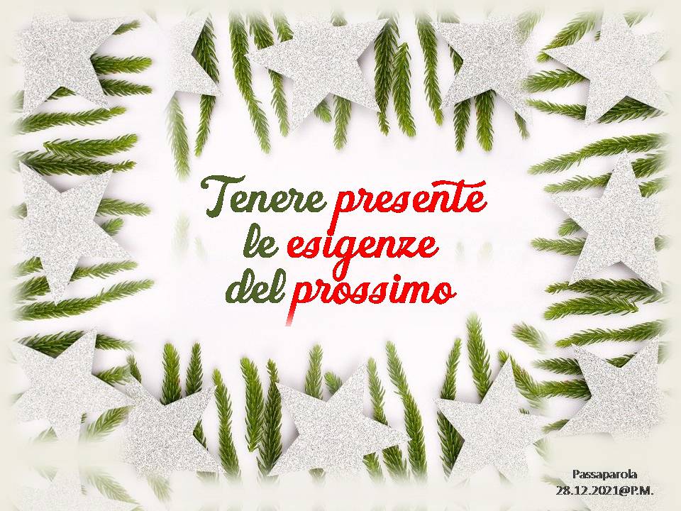 28.12.2021: “Prossimo sono tutti quelli che premono sulla pelle del nostro egoismo”.